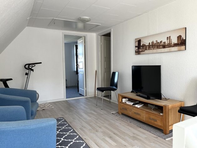 På første sal finder man et møblerbart forrum, der leder videre til et stort åbent loft. Her er også et værelse med indbyggede skabe, et påklædningsrum, og et yderligere stort værelse, der kan tilpasses efter nye ejeres behov.