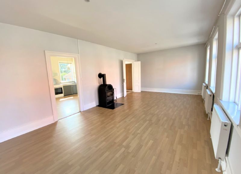 Særdeles rummelig og lys opholdsstue med brændeovn, hvor der er mulighed for at indrette soveværelse i stueplan.
