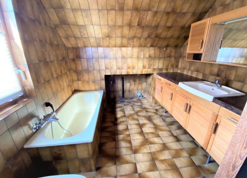 Der er gæstetoilet i forskudt plan og nedgang til kælder med fjernvarmeunit.