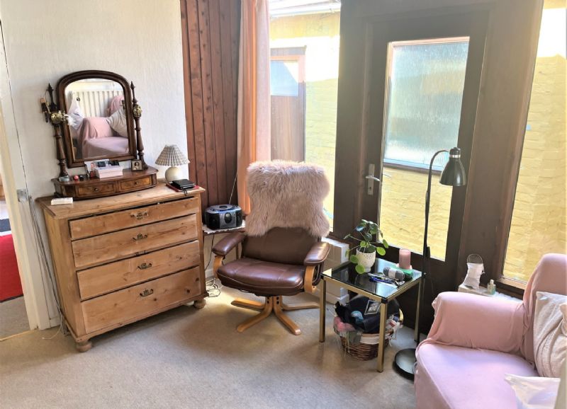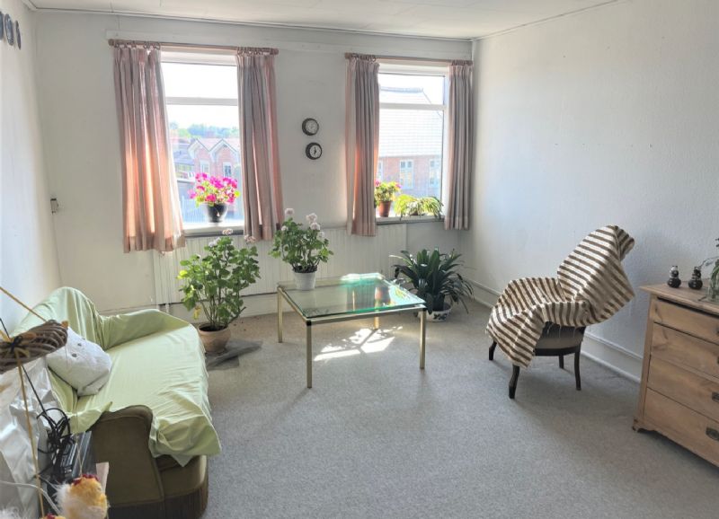 På 1. sal er gang, soveværelse og værelse.