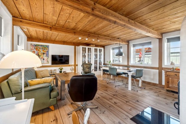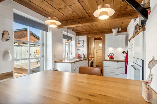 Med sit flotte bindingsværk, synlige bjælkekonstruktioner, og plankegulve fra Østerlars, emmer huset af karakter og varme. Opholdsrummene er hyggeligt indrettet og inviterer til familiehygge med direkte adgang til et køkken, der er blevet opdateret i 2020, og som åbner op til et praktisk bryggers.