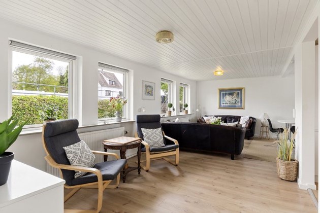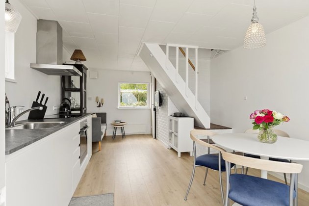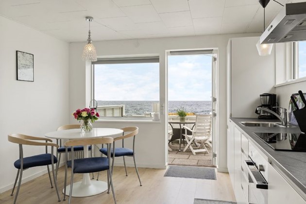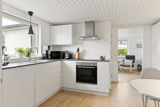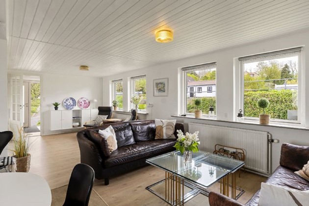 Boligen rummer fire værelser, to køkkener og et stort leverum, der egner sig til både hverdag og gæstebud. Udearealerne inkluderer både blomsterbede, gårdhave og en vestvendt træterrasse – alt sammen med Østersøen som bagtæppe.