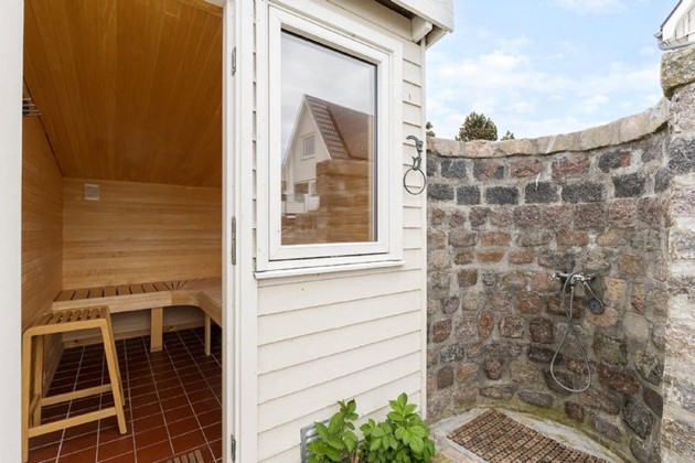 Villaen fremstår i dag indflytningsklar og byder på 155 m² bolig i to plan, et ekstra udhus med eget køkken og bad samt en række unikke kvaliteter som havudsigt fra flere terrasser, et wellnessområde med sauna og udendørsbad og direkte adgang til den bornholmske natur og Østersøen.