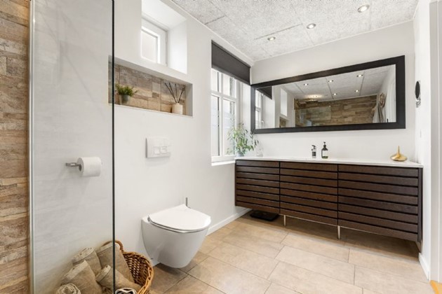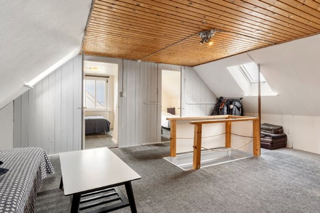 Den tre etager høje villa byder på masser af plads og fleksibilitet – hvad enten det er til den store familie eller til udlejning. Huset rummer seks værelser, tre opholdsrum og flere badeværelser, herunder et i stueplan, der fremstår særligt indbydende.