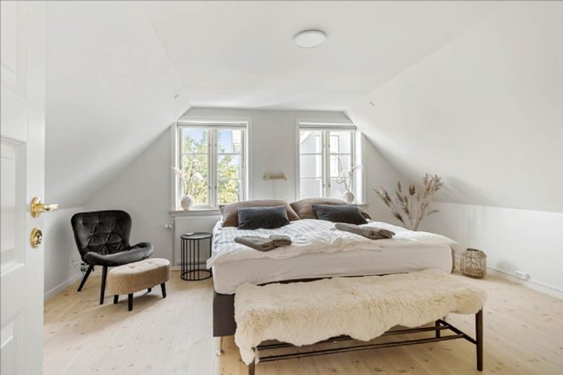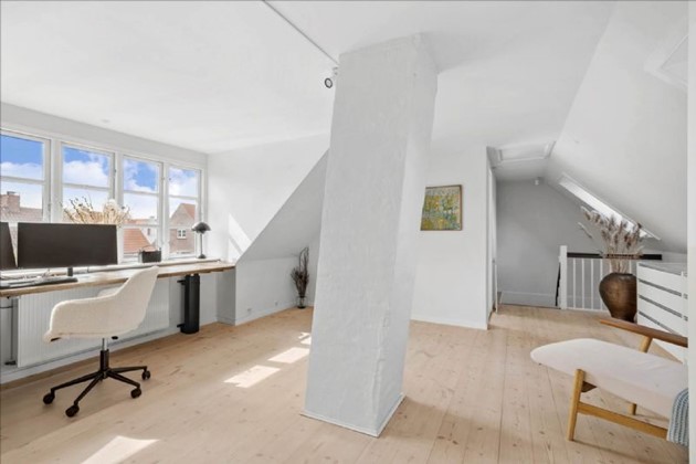 På første sal finder man en stor, åben repos med kontorplads, der kan omdannes til et ekstra værelse, et stort soveværelse, et børneværelse og et depotrum. Derudover er der en lille kælder til opbevaring.