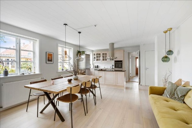 BOLIG - Ugens Hus hos EDC BornholmerBo er en imponerende og velholdt villa beliggende på Søndre Allé i Rønne. Denne ejendom byder på et samlet boligareal på 274 m², fordelt på to separate boliger, hvilket gør den ideel til både familieliv og gæstebolig - eller udlejning.