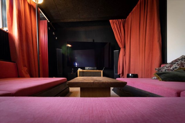 Ekstra faciliteter inkluderer en isoleret og opvarmet garage med automatisk port og varmepumpe, som aktuelt er indrettet som motionsrum. Derudover er der en "hjemmebiograf" eller et hjemmekontor med ekstra isolering og gulvvarme samt flere praktiske udhuse og depotrum.