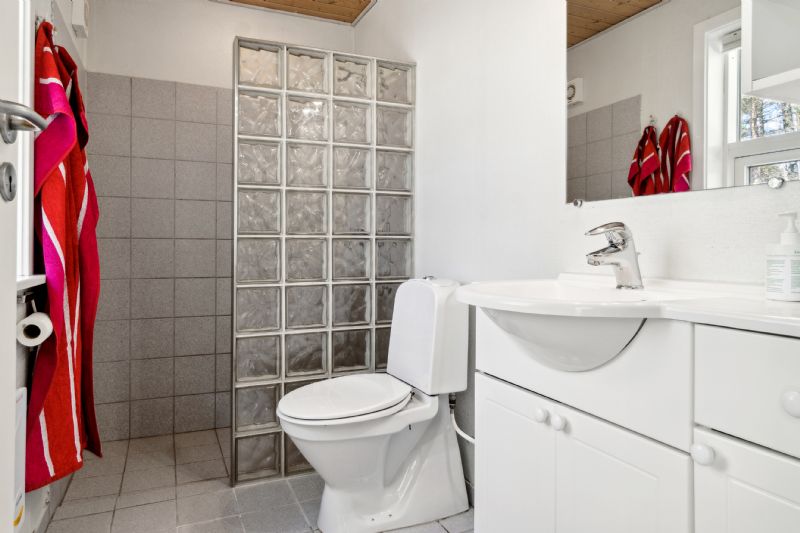 De tre rummelige værelser tilbyder privatliv og plads til tilbagetrækning, samt mulighed for at invitere gæster til at overnatte. Badeværelset er moderne og praktisk indrettet med en bruseniche.
