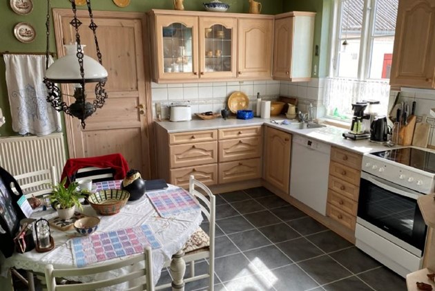 Boligen indeholder entre med opgang til 1. sal, vinkelstue, værelse med forrum og udgang til haven, soveværelse, badeværelse, spisekøkken, værelse og bryggers.