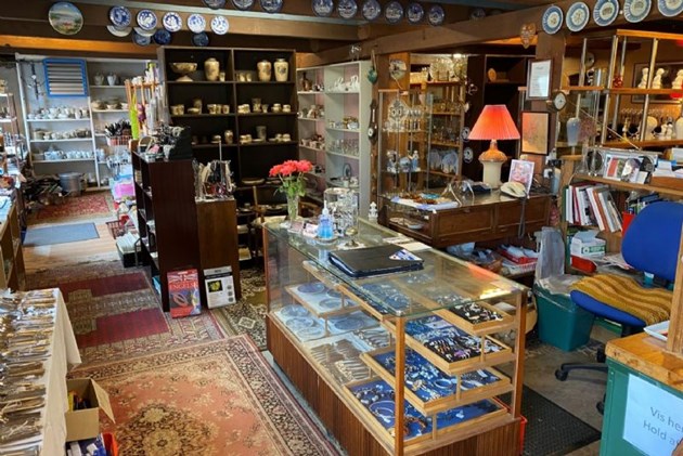 Den gamle mølle er indrettet til antikvitets- og marskandiser butik, opdelt i flere kategori rum, indlevering og klargøring.