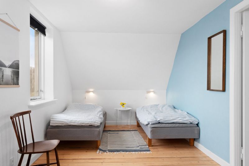 På første sal er der fire værelser og et badeværelse.