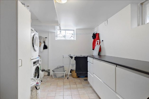 Indendørs byder boligen på velovervejede indretningsvalg, der passer perfekt til denne type bolig. Kælderen er på 62 m², og ligesom beboelsen er denne istandsat, så den fremstår pæn og anvendelig med egen indgang, to gode disponible rum og ekstra toilet/badeværelse.