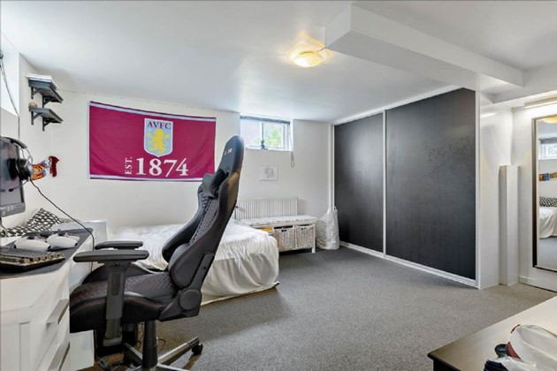 Kælderen indeholder et trapperum med opbevaringsplads og egen indgang, et pænt badeværelse med toilet, håndvask og bruseniche, samt et stort bryggers med flisegulv, skabe og installation til vaskemaskine m.m. Der er også to gode disponible rum, som sælger anvender til værelser.