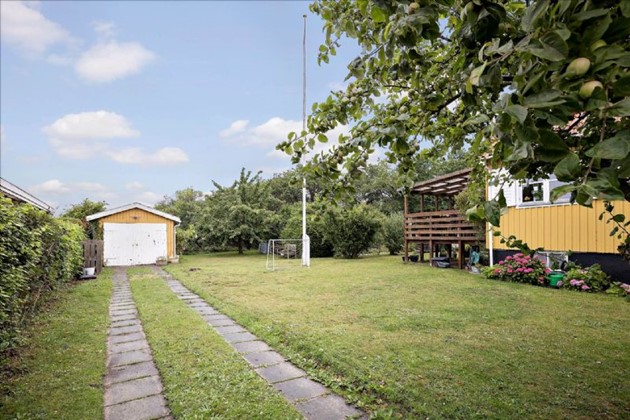 Grunden er en skøn grund på 790 m² med en ugeneret have, græsplæne, diverse beplantning, solkroge og en lækker overdækket terrasse, som der er direkte udgang til fra huset.