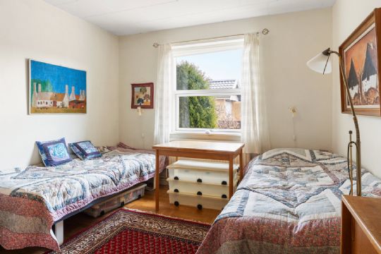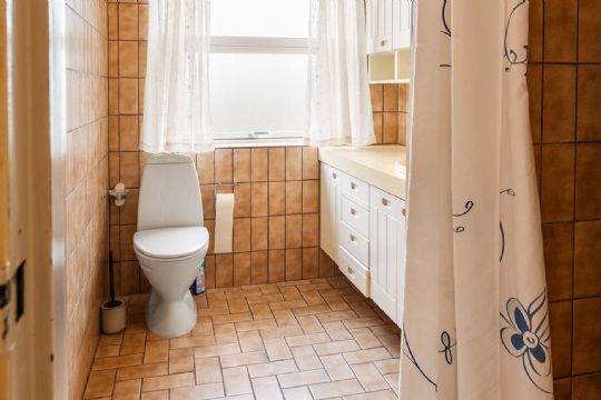 I den ene ende af huset ligger værelsesafdelingen med tre gode værelser, badeværelse og et rummeligt bryggers. Planløsningen gør det muligt at adskille børne- og voksenafdeling, hvilket giver fleksibilitet i hverdagen.