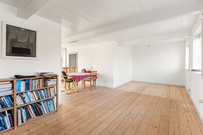 Huset rummer fire værelser, et åbent køkken-alrum samt rummelig entré og repos. Planløsningen er enkel og funktionel, og de lyse opholdsrum får et naturligt løft af udsigten mod Østersøen.