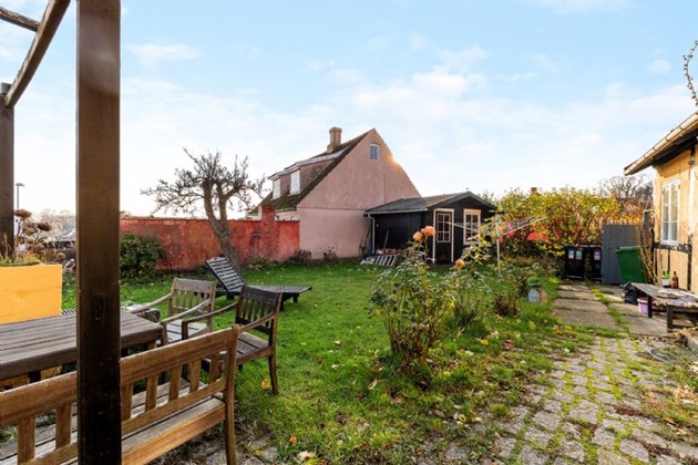 Udendørs findes en lille, velplejet have med terrasse, hvorfra havkigget kan nydes. Et isoleret udhus giver ekstra plads til opbevaring eller hobbyaktiviteter.