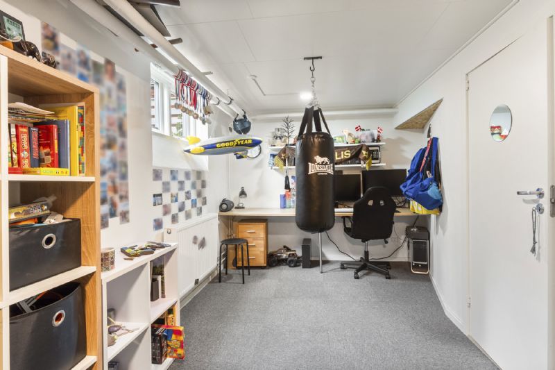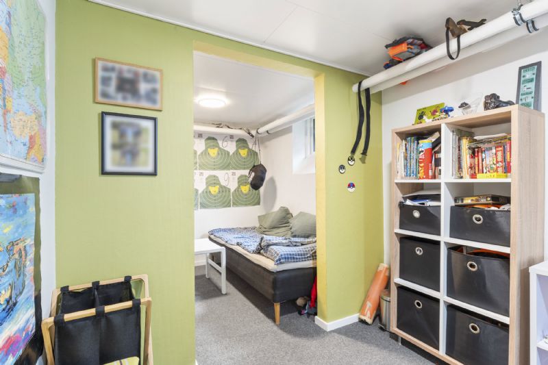 Indendørs byder boligen på gæstetoilet, badeværelse, bryggers samt kælderrum med mange anvendelsesmuligheder. Ifølge ejendomsmægleren er huset opdateret og indflytningsklart.
