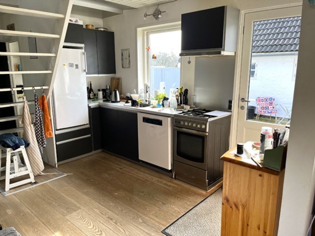 Denne indbydende bolig byder på en velovervejet planløsning, der starter fra det øjeblik, du træder ind i entréen, hvor en trappe fører op til første sal. Hovedetagen rummer et køkken med direkte udgang til en hyggelig gårdsplads og have, hvor morgensolen kan nydes til fulde. Vinkelstuen, hjertet af hjemmet, er udstyret med en effektiv brændeovn, som er koblet til centralvarmesystemet, sikrende en behagelig varme gennem hele huset.