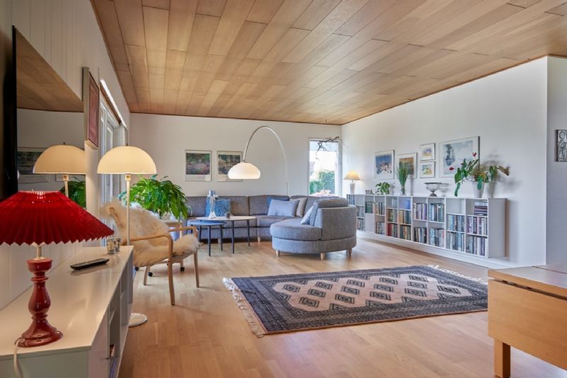 Desuden er der to gode værelser med skabe, badeværelse med separat brus og kar samt gavlværelse og soveværelse med skabe.