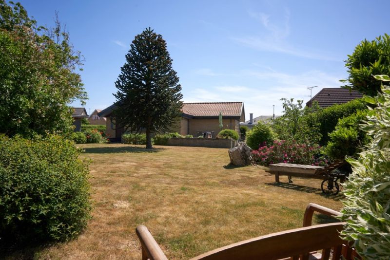 Desuden er der en velholdt have med græsplæne, træer og buske.