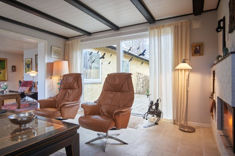Selve boligen indeholder entre, køkken, bryggers med fjernvarmeunit, spisestue i åbent plan til pejsestue med gulvvarme og udgang til terrasse og have.