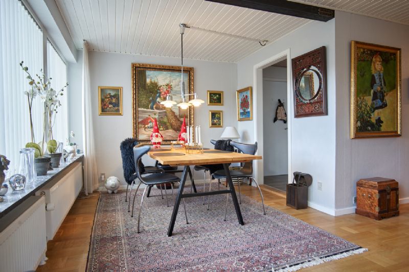 Der er desuden et værelse og et stort soveværelse med skabe og separat kontorafsnit, som kan deles til to værelser. Hertil kommer et badeværelse med brus og gulvvarme samt et gavlværelse.