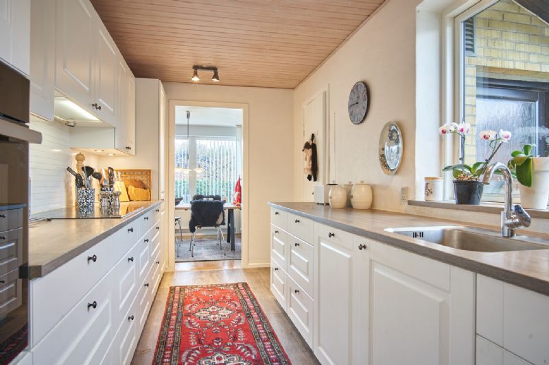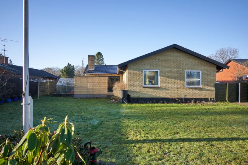 Til huset er carport, isoleret udhus, redskabsrum og terrasse samt nemt holdt have og forhave og drivhus.
