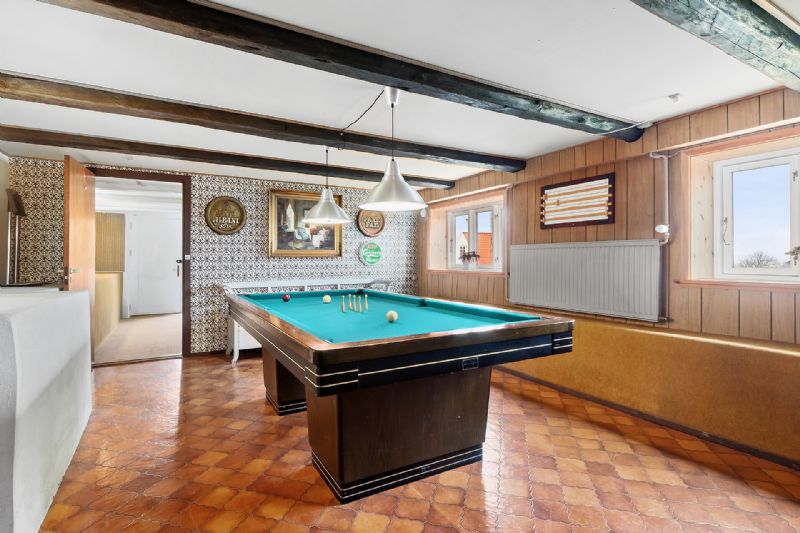 Inden døre udfolder boligen sig over 162 kvadratmeter, hvortil der kommer en god kælder og bryggers i tilbygningen. Boligen centrerer sig omkring de to rummelige stuer. Udsigten er fænomenal fra begge, og i den ene ses et nydeligt parketgulv i eg. Tilstødende er det fine køkken, hvis udtryk perfekt matcher boligens stil, placeret, mens etagen afrundes af et værelse, samt et badeværelse og et gæstetoilet. På førstesalen findes en møblérbar repos, to værelser og yderligere et badeværelse. Kælderen indeholder tre disponible rum.