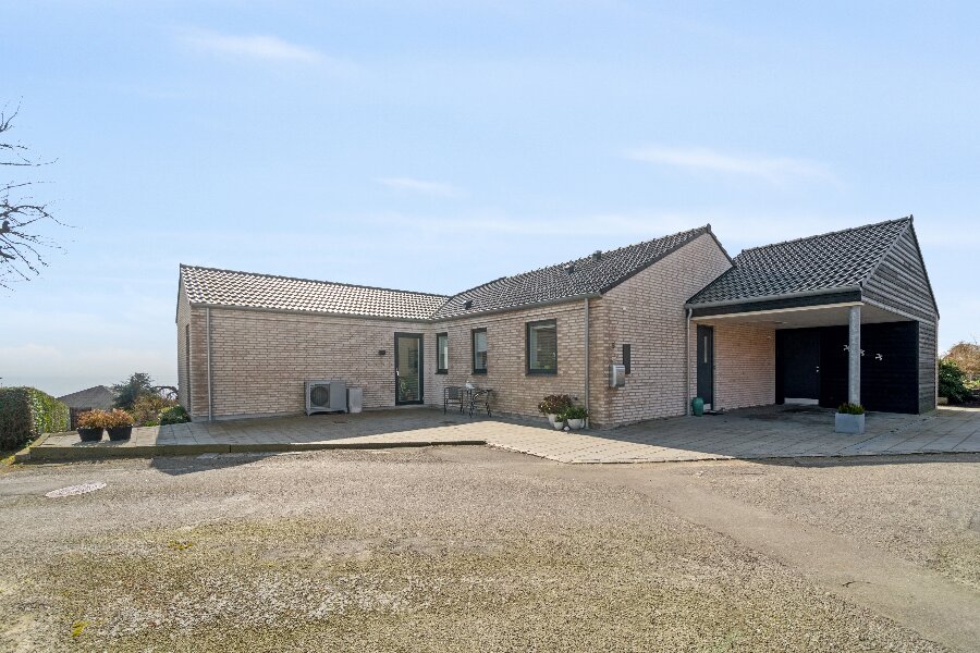 Opført i 2020 af Eurodan-Huse, er denne villa indbegrebet af kvalitet og design, hvor der ikke er gået på kompromis med materialer eller håndværk. Den moderne arkitektur komplementerer husets privilegerede beliggenhed og sikrer, at boligen både føles indbydende og eksklusiv.