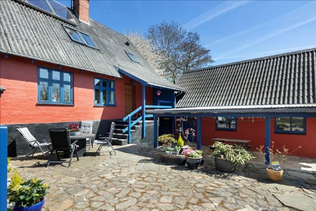 Ejendommen ligger naturskønt med Robbedales skov, grusgrav og Stampens strand inden for kort afstand. Udearealerne tæller dobbelt carport, stor gårdsplads med solkrog, værkstedsbygning, brændeskur og en have med græsplæne, varieret beplantning og å-løb.