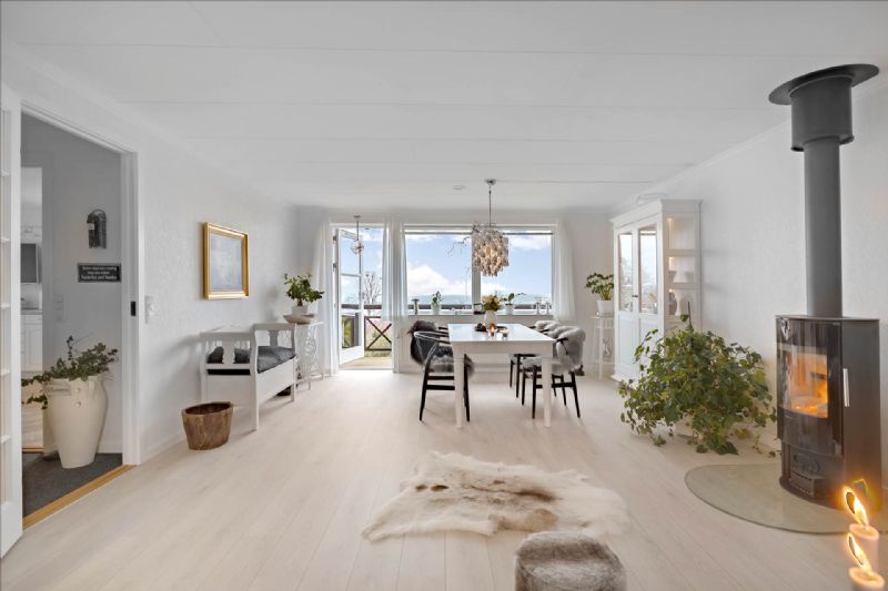 God indretningEjendommen indeholder entré med fordelingsgang og nedgang til underetagen, stue med havudsigt, brændeovn og udgang til terrassen. Der er nyere badeværelse, spisekøkken med udsigt og udgang til terrassen.