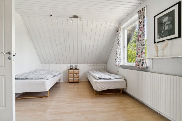 Boligens planløsning er ideel for familien, der ønsker en opdelt forældre- og børneafdeling. I stueetagen ligger et ideelt forældresoveværelse med indbyggede skabe, tæt på et moderne badeværelse, som blev totalrenoveret i 2020. På førstesalen findes børnenes afdeling, som inkluderer en ekstra stue, et walk-in-closet og tre rummelige værelser, der alle tilbyder god plads til leg og læring.