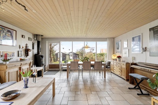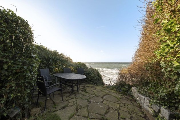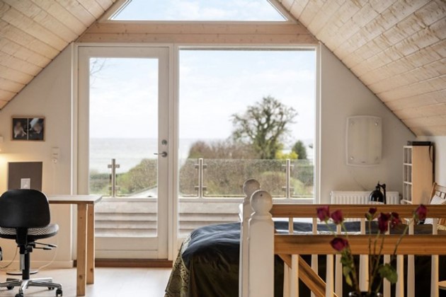 Grunden på 1.558 m² er vestvendt og rummer både en solrig baghave og en privat terrasse tæt ved vandet, hvor man kan nyde roen eller tilbringe tid med familien. Den lyse stue med loft til kip og synlige spær giver mulighed for at nyde havudsigten dagen lang, hvad enten rummet bruges som stue, kontor eller værelse.