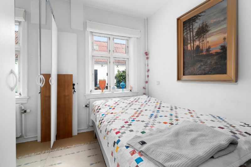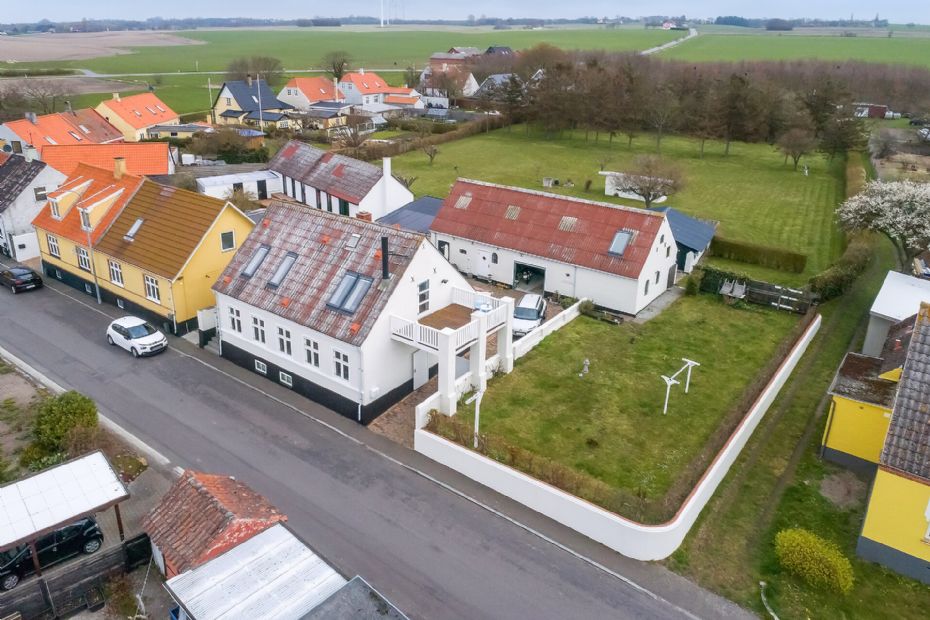 Ejendommen fra 1877 præsenterer sig nydeligt med hvidmalet facade og hvide vinduer. Boligen befinder sig på en 6.433 kvadratmeter grund med et stort, grønt areal bagtil samt en hyggelig udestue. Den lille gårdhave mellem hovedhuset og garagebygningen er etableret som terrasse.