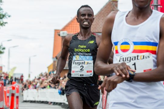 I herrernes fører felt var der hård kamp om at komme ud af sandet og klitterne. Det endte med en sejr til 2013 vinderen Abdi Hakim Ulad der brugte 19:01 minutter og blev registret med samme tid som Haron Kiptoo Sirma, men med førstnævnte først over stregen og gårsdagens vinder, MWilliam Morwabe på tredjepladsen fire sekunder efter. Samlet fører Abdi Hakim Ulad nu med fire sekunder.