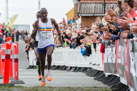 Hos herrerne vandt en kending i Etape sammenhæng; William Morwabe, der vandt i 2014. I 29:27 minutter og med ét sekunds forspring slog han den tidligere vinder Abdi Hakin Ulad. På tredjepladsen kommer Haron Kiptoo Sirma der er 18 sekunder efter vinderen. Så det tegner til en skrap dyst mellem de førende herrer og begge er scenevante på podiet. Man skal helt ned på 19. pladsen for at finde Vikngløberen Toben Juul Nielsen.