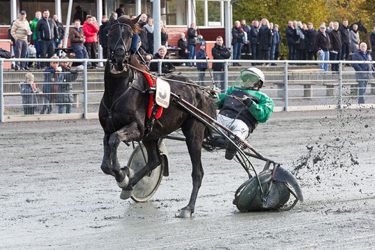 Bjarne Pedersen var dobbelt uheldig. Fik ødelagt sulkyen og skal afregne 750 kroner for en grov trængning med sin hest Reduc.Karantænen har ingen praktisk betydning, da sæsonen nu er forbi på Bornholm, og Bjarne Pedersen ikke længere kører løb udenfor øen. Sidste udebanebesøg ligger helt tilbage til 2009, hvor han gæstede Charlottenlund Travbane med hesten Klarinetten.