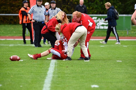 Som ethvert andet stort krigsslag, handler det om at vinde terræn, strategi, udholdenhed, hurtighed og i bedste amerikanske stil om styrke. Det hele ledes med ”inter-com” så krigens ledere er i konstant kontakt med hinanden og når en falden kriger skal have hjælp på banen er en tår vand som regel det allerbedste middel til at behandle alt fra småknubs til næsten brækkede arme og ben, men i Amerikansk Football på Rønne Stadion Nord, så hedder en tår vand så ”Medic” … også på det finske hold - og et par friske unge piger stormer ind på banen for at yde førstehjælp med vandflasken.