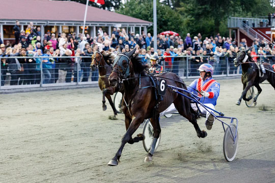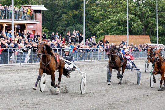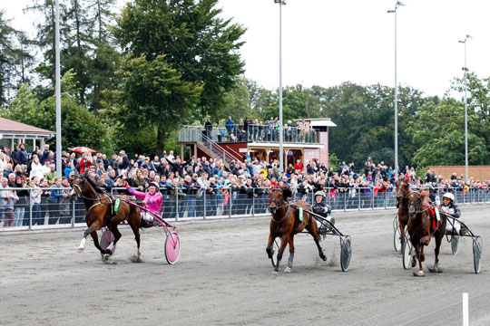 Speedy Globe nød godt af at ligge bagved Pegasus GK og Sarah BJ der længe kæmpede en hård kamp om føringen. Pegasus førte længe inden Sarah BJ kom forbi på opløbsstrækningen, men udvendig kom altså Speedy Globe. Flot kørt af Betina Lund.
