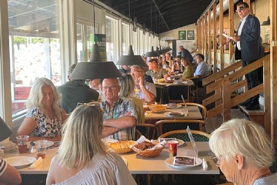 Rønne Ejendomshandel benyttede lejligheden som løbssponsor for at invitere 70 forretningsforbindelser på frokost i Travcafeen. Foto: Bjarne Hansen