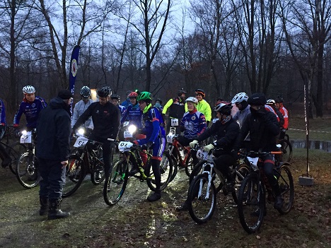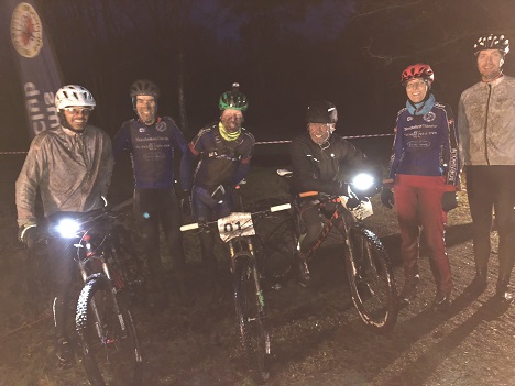 22 ryttere havde monteret ekstra kraftigt lys på deres mountainbike og på deres hjelme og trodsede regnvejret.