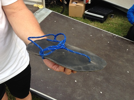 Man har hørt om det, men sjældent set det - en maraton i tynde sandaler, nærmest sommerlige klip-klapper på asfalt, men ikke ligefrem igennem Etape Bornholm der jo byder på et noget anderledes terræn.