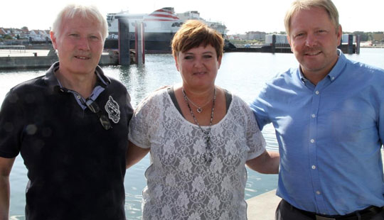 Færgens repræsentant Anita Jakobsen Aird, flankeret af Benny Pedersen og Leo Rasmussen fra Rønne fB.Bestyrelsesmedlem i Rønne fB Leo Rasmussen oplyser, at med de mange rejser, Rønne fB fortager i løbet af et år, er Færgen blevet en uundværlig samarbejdspartner.