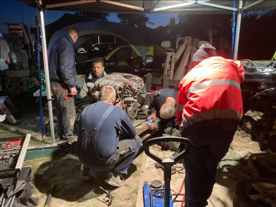 Der arbejdes intenst på at skifte Christina Steinleins motor - det er "sort" arbejde natten igennem