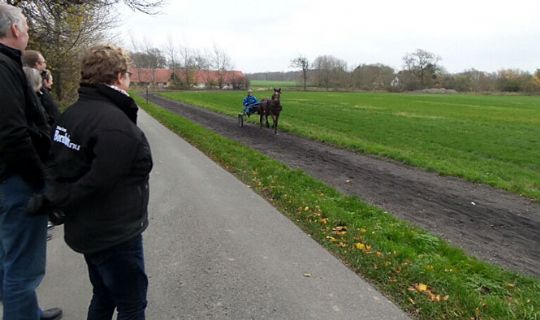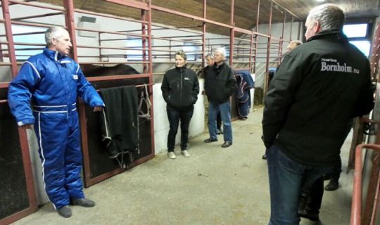 Ejerene i andelsstalden bag travføllet Bornholm Nu var lørdag på besøg hos hesten, der er i træning hos travkusk og –træner Frank Mikkelsen.