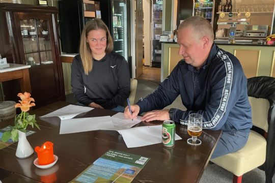 Det var formanden for Bornholms Golf Klub, Mette Munch Mikkelsen, og Jens Christian Viborg, der underskrev aftalen.