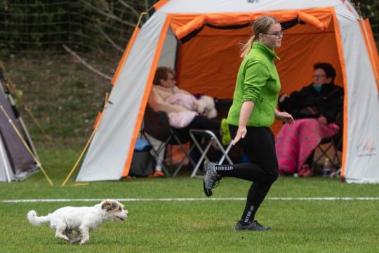 Små hunde, spring: Kimmie Wolsted med jack russel terrier Max .