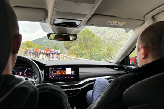 Anders Lund fulgte rytterne i tre træningsløb - fra forsædet i følgebilen. Foto: Bjarne HansenPå holdet er der nok især to navne, Emil Schandorff og Jacob Schebye, som har landstrænerens ekstra opmærksomhed. Sidstnævnte har allerede vist sit værd ved at blive udtaget til landsholdet til PostNord Danmark Rundt sidste år, et tydeligt tegn på hans evner og potentiale.
