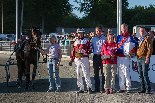 Frank Mikkelsen vandt Radisson Blu Fredensborg Hotel C. P. Lunds mindeløb med Speedy Spring.Næste pioner der blev mindet var fjerde afdeling i Bornholms Heste & Kreaturforsikring Helmer Hansens mindeløb med en sikker spidssejr til Kim Mortensen bag B G Anna Maria. Parret startede alene i forreste volte og når Kim Mortensen får den slags chancer bliver der kørt efter devisen fang-mig-hvis-I-kan. B G Anna Maria blev presset flere gange undervejs, men ingen kom forbi og til slut var sejren ret sikker.